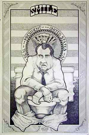 This scathing political poster, which depicts Nixon and his cronies in their "last supper" together, It is in mint condition and is printed on glossy paper stock.