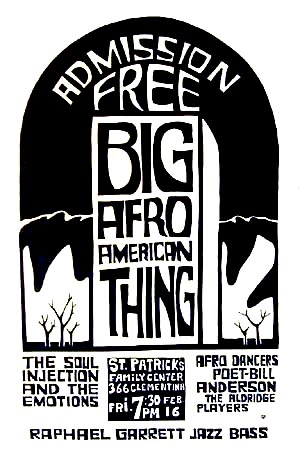 The Soul Injection and the Emotions, Afro Dance, Poet Bill Anderson. Free at the St. Patricks Family Center. Raphael Jazz Bass.