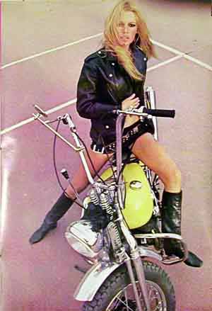 Huge classic poster of French actress Brigitte Bardot on her Harley.