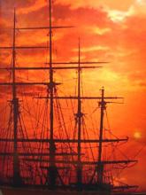 Illustration of square in San Francisco w/ statue of woman carrying pitchfork