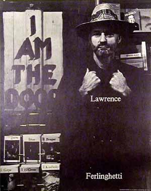 Beat poet Lawrence Ferlinghetti standing outside his bookstore City Lights in San Francisco