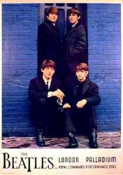 This poster of the Beatles, produced by NEMS Enterprises LTD in 1964 has become one of the earliest Beatles icons. It is often said that the Beatles Royal Command Performance in 1963 confirmed their status in England. This poster was widely distributed in the U.S. but not many are in near mint condition like this one.