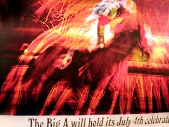 Huge poster advertising a 4th of July celebration at a horse race track. I could not get the entire poster in the pic. Printed on medium weight, semi-glossy paper.