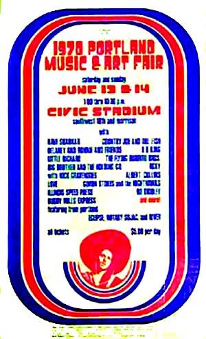 Featuring Ravi Shankar, Country Joe and the Fish, B.B. King, Big Brother and The Holding Co. June 13 &14 1970 at the Civic Stadium (photo of country joe at bottom)