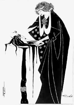This is an illustration from a set that A.B. did for the play Salome It depicts Salome's mother with the head of John the Baptist.