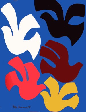 small white crease marks scattered around middle top and middle bottom of poster, wear on right border