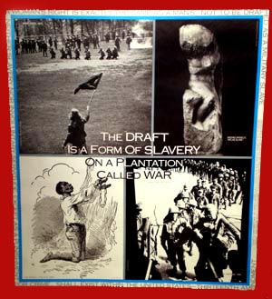 Around the edges says: "a woman's right is exactly the same as a man's: not to be drafted as a military slave. Neither slavery nor involuntary servitude, except as a punishment for a crime... shall exist within the United States. 13th amendment"