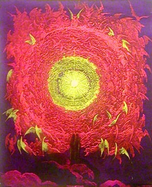 Amazingly beautiful and reactive blacklight art. Depicts a couple standing on top of a mountain looking at heaven opening up to them!