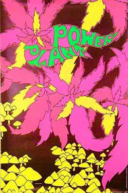 This poster is the LP illustration from Golden Dawn's Album Power Plant. They were based in Austin, Texas and were friends of Rocky Erickson of the 13 Floor Elevators. I recently corresponded with one of the band members and found out they still are making music together and have just released a new CD. The poster glows great under a blacklight!