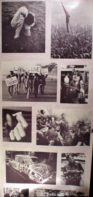 Glossy stock. Psychedelic writing all around pictures. Poster too long to fit them all in!