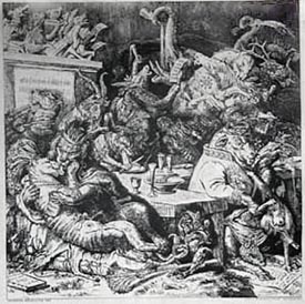 SKU: 1007Publisher: Double-H-PressColor: Black & WhiteDescription: Illustration of animals at a wild, debaucherous party! Catalog: Fine ArtYear: 1967Condition: 2.0Product Width: 17.5”Product Length: 18.5”$45.00